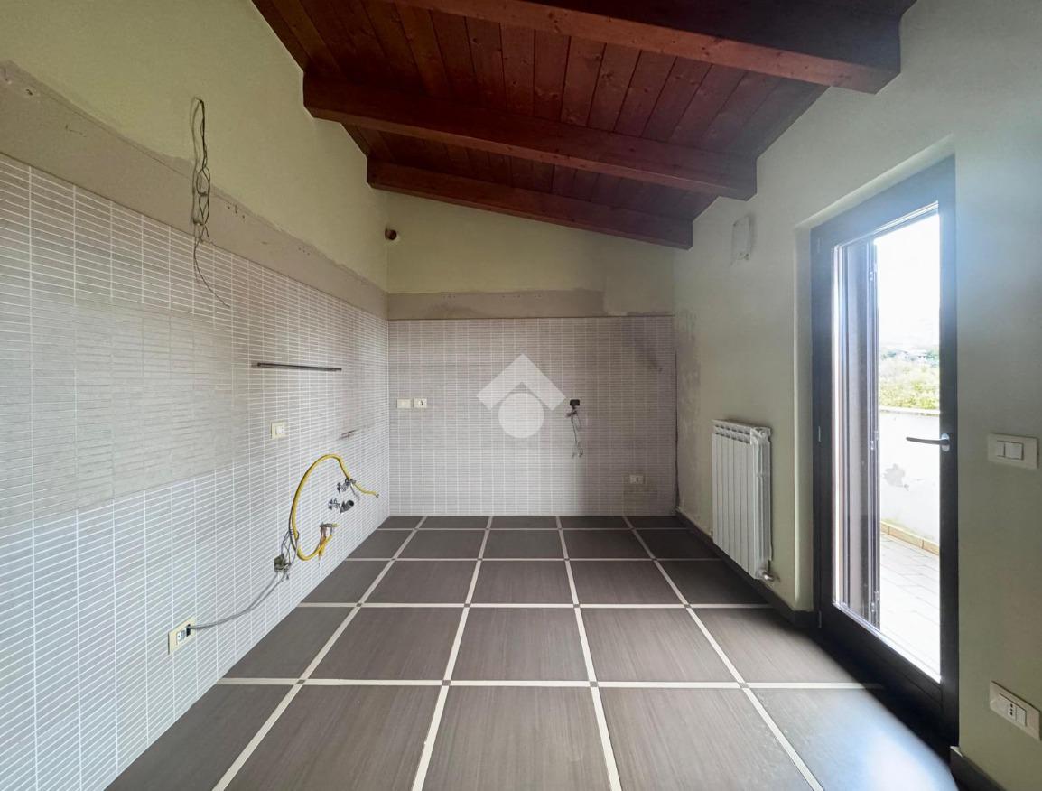 L'immobile si apre con il salone, luminoso e accogliente con accesso diretto su ampio terrazzo, ideale per momenti di relax all'aperto. Anche la cucina, abitabile, dotata di ripostiglio, ha accesso diretto allo stesso terrazzo, creando un'armoniosa continuità tra gli ambienti interni ed esterni.