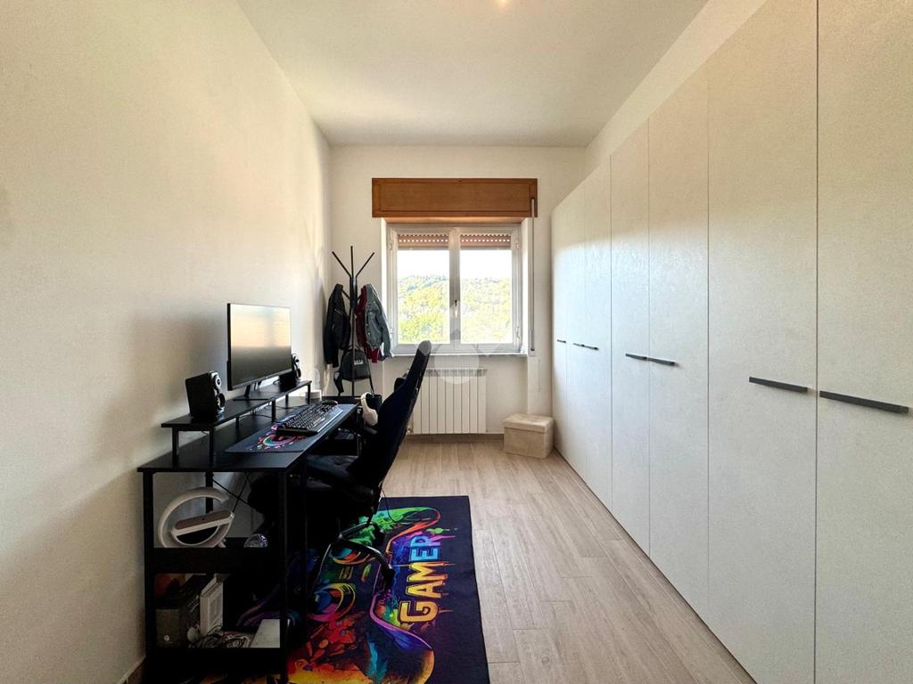 L'immobile si apre su una spaziosa zona giorno che unisce cucina e soggiorno, con accesso diretto a un terrazzo, ideale per momenti di relax all'aperto. La prima camera, attualmente adibita a studio, offre uno spazio versatile per lavorare o studiare da casa. Il primo bagno, comodo e funzionale, serve l'appartamento.
