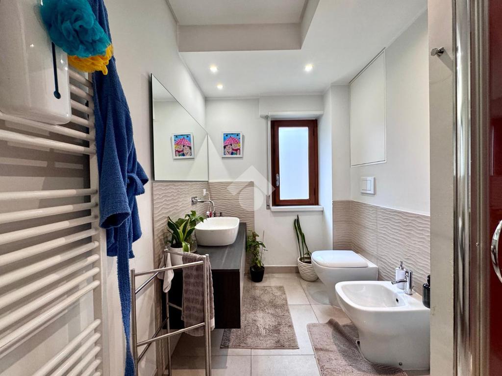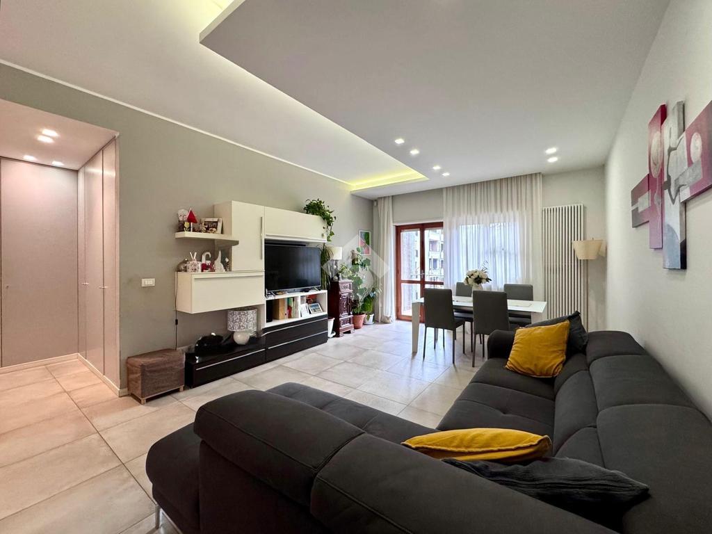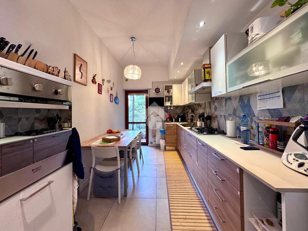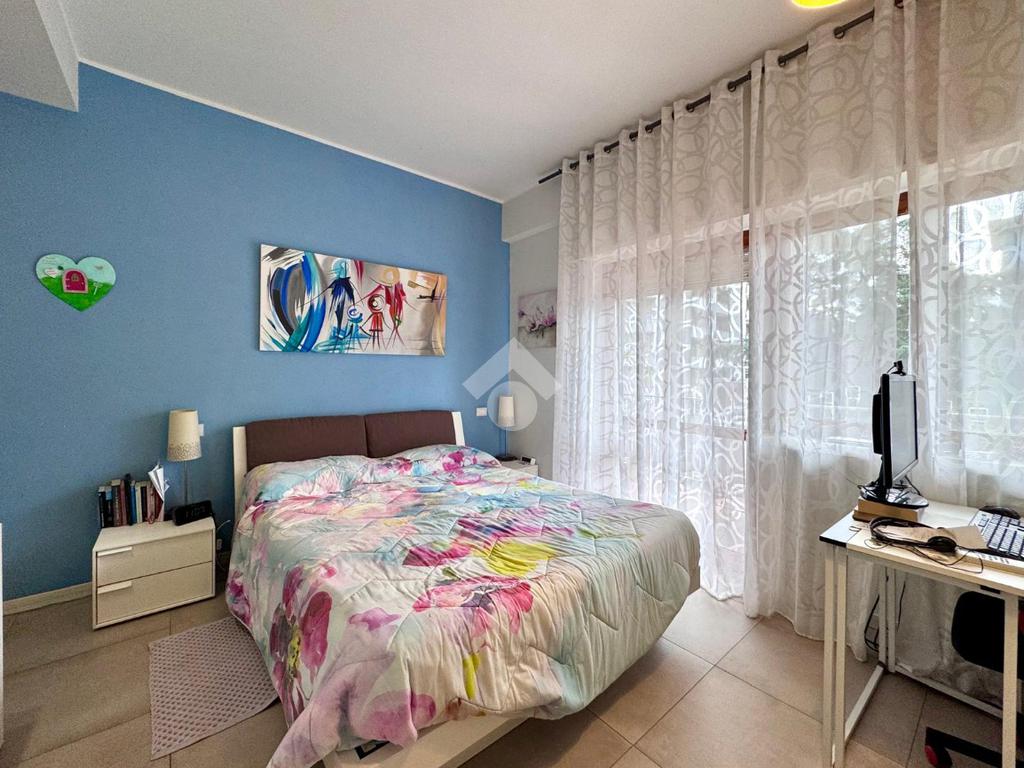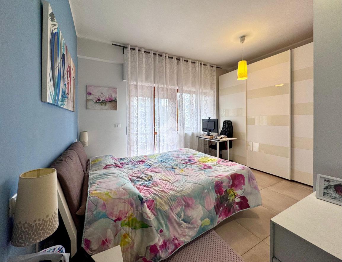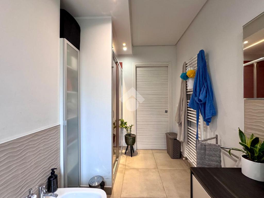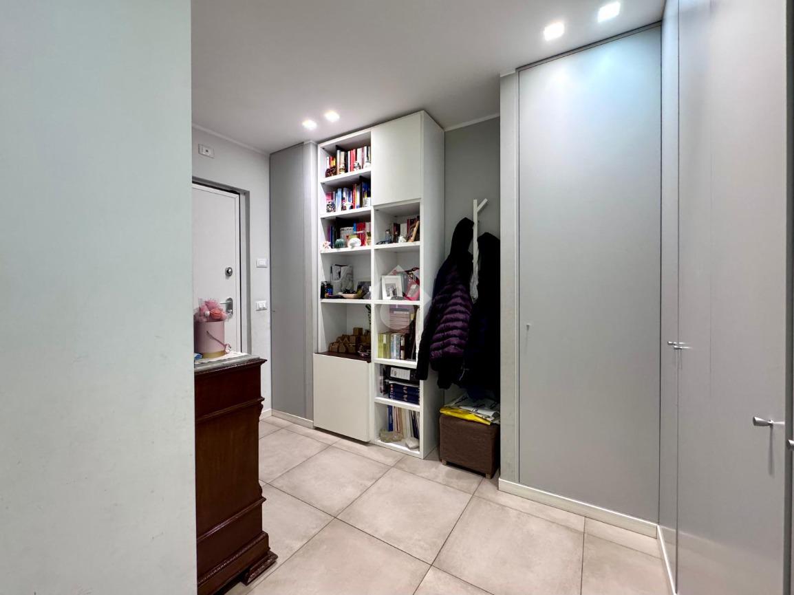 L'immobile si apre con un ingresso accogliente, dotato di una pratica cappottiera e un armadio a muro a tutt'altezza, ideale per ottimizzare lo spazio. Il salone, dettagliato con doppio punto luce che affaccia su un ampio terrazzo, rende l'ambiente luminoso, perfetto per momenti di relax all'aperto. La cucina è funzionale e dispone di un balcone e di una comoda lavanderia.