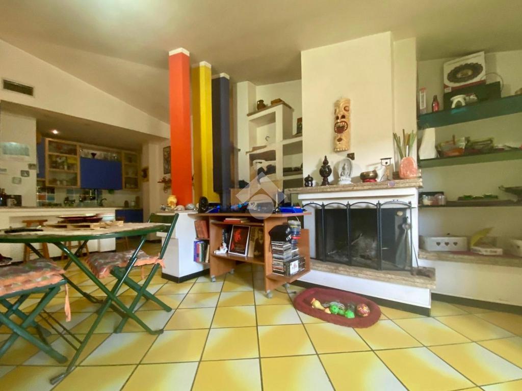 L'immobile è composto da un ampio ingresso che si apre nel soggiorno completo di camino e cucina a vista.