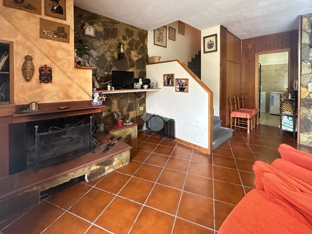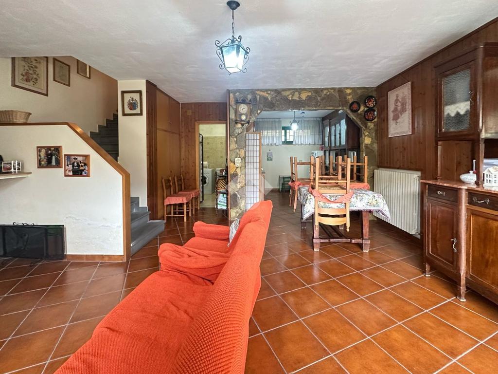 - Piano seminterrato: caratterizzato da un primo giardino pavimentato, che accoglie un comodo soggiorno con camino, una cucina abitabile e un bagno, creando uno spazio perfetto per momenti conviviali e di relax.